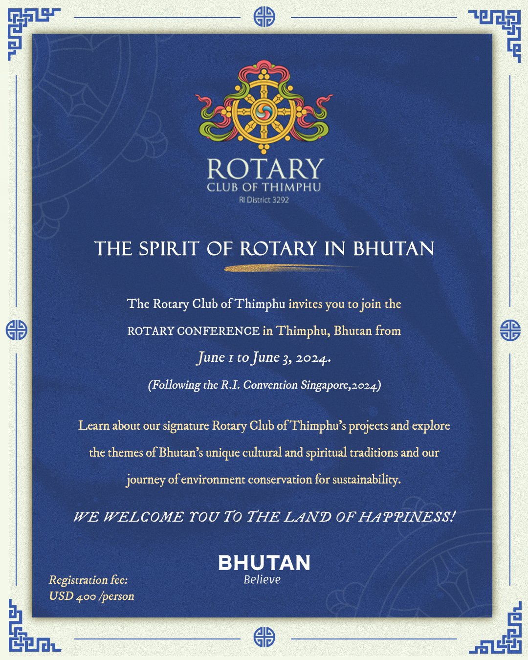 The entire cost of the establishment of the Club, including the hosting of the Rotary dignitaries was borne by the RGoB.